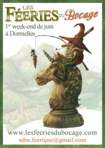 La dixième édition du festival des Féeries du Bocage aura lieu les samedi 5 et dimanche 6 juin 2021 de 10 à 19 heures à la salle des fêtes Marie Picquard, allée des Noyers à Dormelles (77130)