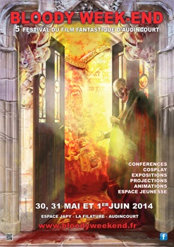 Le Bloody Week-end d’Audincourt (25) aura lieu cette année du vendredi 30 mai au dimanche 1er juin 2014. Ce festival du film fantastique s’adresse non seulement à un public de passionnés mais également à tous ceux qui souhaitent découvrir le fantastique sous toutes ses formes (livres, vêtements, figurines, props, cosplay, etc.).