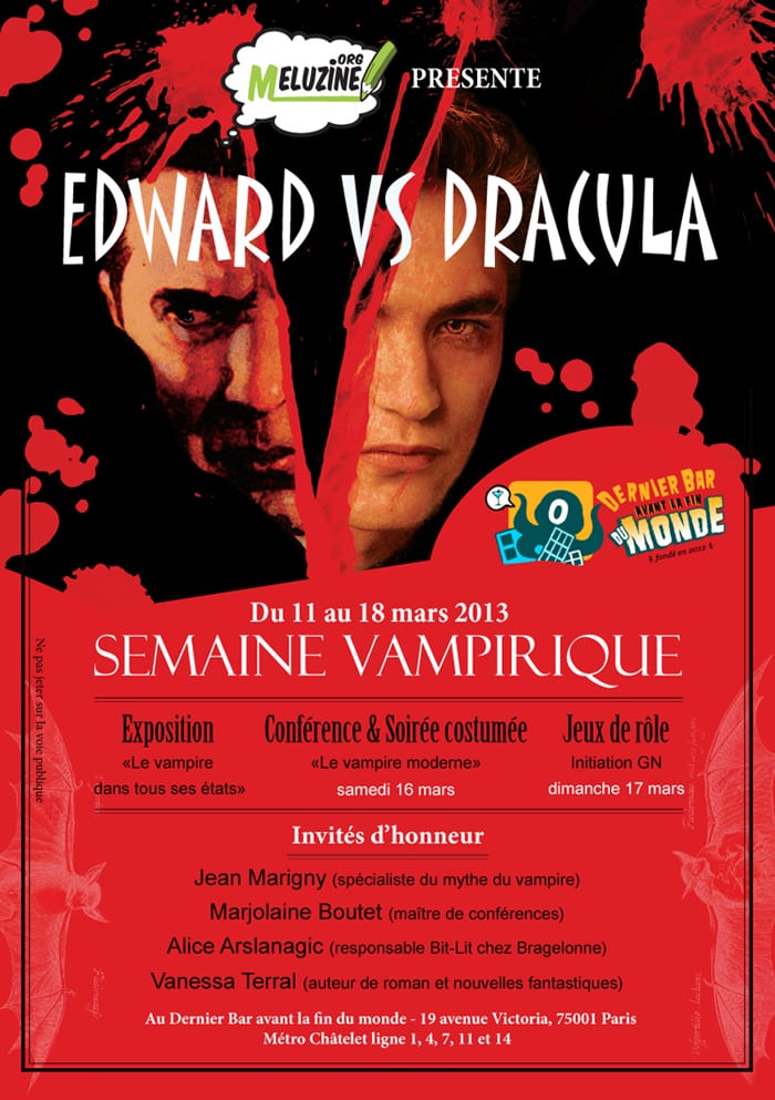 edwarddracula_dernierbarIl s’agit d’un évènement organisé avec le « Dernier bar avant la fin du monde » sur le thème du vampire qui aura lieu du 11 au 18 mars 2013.