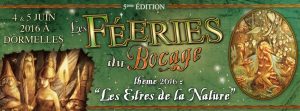 La cinquième édition du salon des Fééries du Bocage se tiendra les 4 et 5 juin 2016 à Dormelles. Dans ce salon à l’ambiance champêtre, vous pourrez profiter de ballades contés, d’un marché féérique, de conférences, d’un concert du groupe irlandais de musique celtique Bogha le samedi soir.