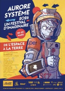 Après une première édition en 2025 « tout est politique surtout la Science-Fiction », voici la deuxième édition du festival Aurore Système sur le thème « De l’espace à la Terre ». Festival qui s’intéresse particulièrement au rapport entre politique et Science-Fiction dans les imaginaires d’aujourd’hui. Au programme cinq tables-rondes, des stands d’éditeurs indépendants, le webcast de Blast « Planète B », le podcast d’Antoine Daer « No Future », récits de contes pour les plus jeunes et un spectacle musical de Richard Gaitet et La Féline.