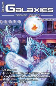 Le dossier sur la SF au pays du soleil levant est dû à Wu Yan, auteur chinois de SF, titulaire à l’Université de Beijing (Pékin) de la chaire de littérature de science-fiction. Didactique, limite ardu, le texte introductif permet cependant au lecteur occidental de découvrir le point de vue chinois sur l’histoire (de la Chine en particulier), et surtout les politiques culturelles de son pays. L’interview de Wu Yan par Lavie Tidhar explicite le chemin suivi par un amateur, devenu écrivain puis universitaire. L’ensemble propose une ouverture différente sur le monde de la SF ainsi que sur l’« Empire du Milieu ». Enfin, la nouvelle de Wu Yan étonne par sa modernité, puisqu’elle se passe dans notre monde moderne et informatisé. Ce sont les bienfaits ou méfaits d’une nouvelle souris qui nous sont décrits avec malice. Ce qui permet au lecteur d’être convaincu de la réalité de la SF chinoise. Ce dont on ne peut que remercier Galaxies.