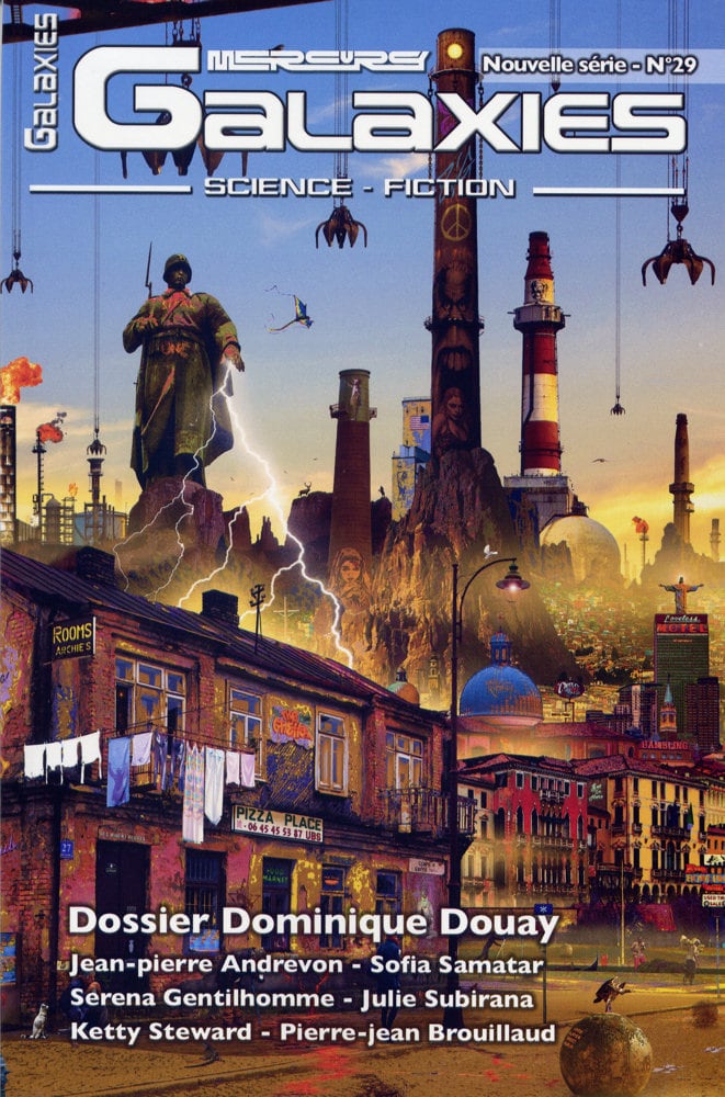 Enfin, luxe habituel de Galaxies, l’auteur invité offre une nouvelle toute fraîche : La Course du Marque-Page dans les Lignes du Livre. À partir lui aussi d’une apocalypse, Dominique Douay interroge le lecteur sur la réalité de la fiction, ou l’inverse ? Et puis, en guise de bonus, une nouvelle de 1979 tirée de l’anthologie Compagnons en Terre Étrangère – 2 : Qui m’appelle ? De Dominique Douay et Jean-Pierre Andrevon. Une autre vision d’apocalypse, non dénuée d’humour glacé et sophistiqué !