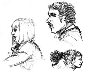 Pour la peine, mise à jour de mon premier dessin en meilleure qualité, et je contre-attaque avec un croquis de Gimli et trois crobards sur le vif. Na ! ![]()