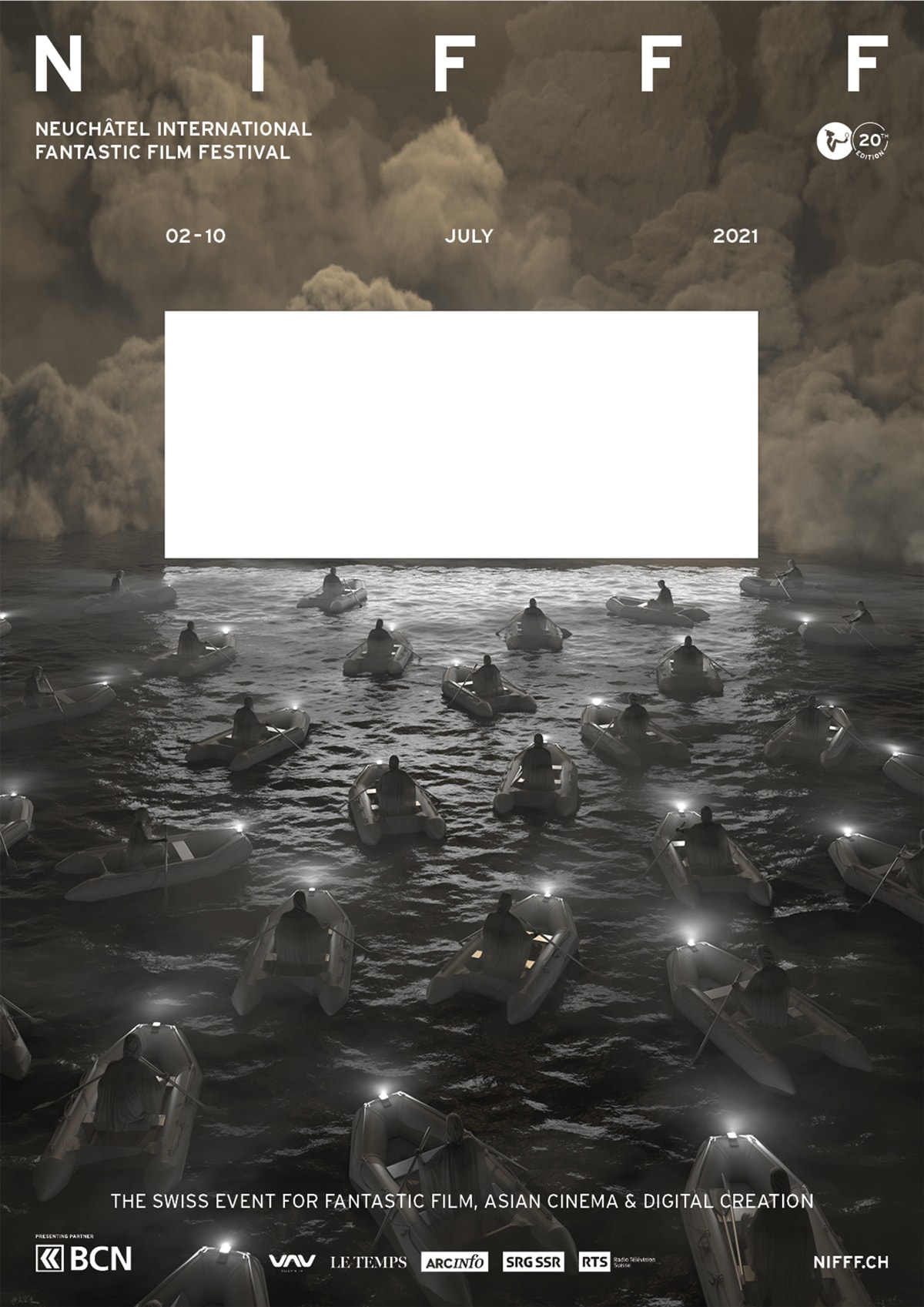 L’affiche de la vingtième édition, au décor apocalyptique, a été créée par Supermafia, un collectif d’artistes neuchâtelois. Malgré cet effet apocalyptique, un message d’espoir subsiste : ce rectangle blanc et lumineux s’érige en bouclier face à la tempête et rappelle sans conteste un écran de cinéma.