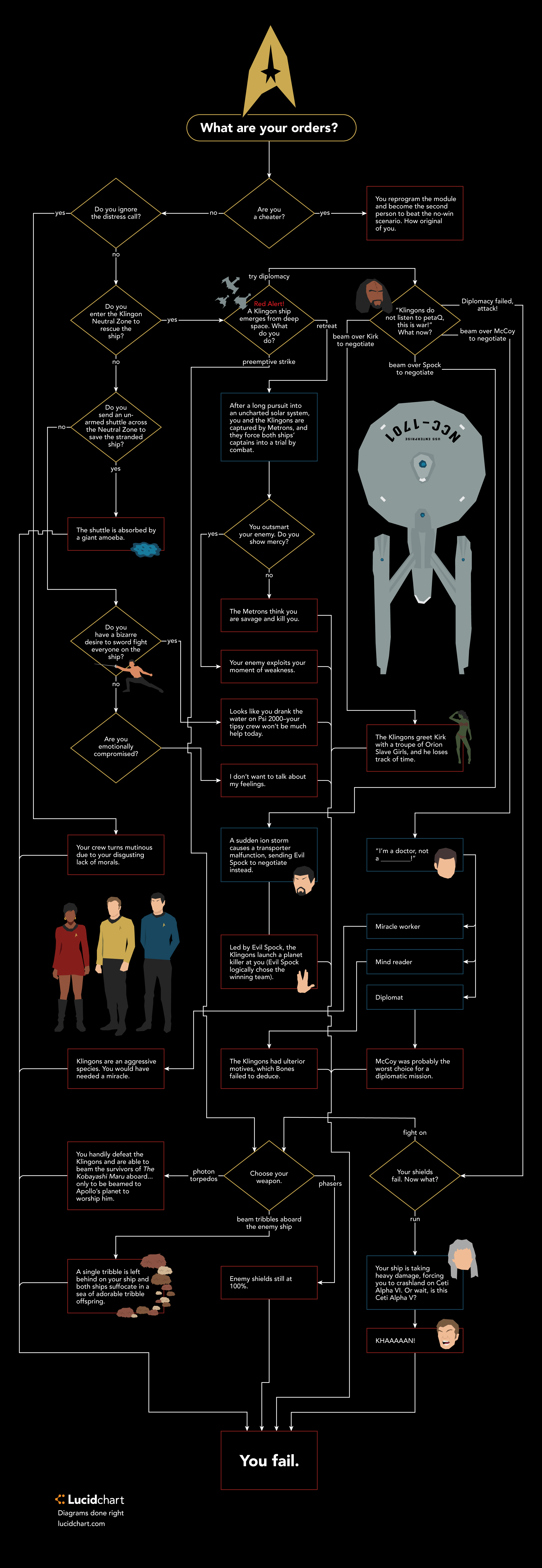 Vous êtes sur le pont de votre vaisseau, votre équipage autour de vous, lorsque vous recevez le signal de détresse d’un cargo civil, le Kobayashi Maru, situé dans la zone neutre en la Fédération et l’espace Klingon. Qu’allez vous faire ?