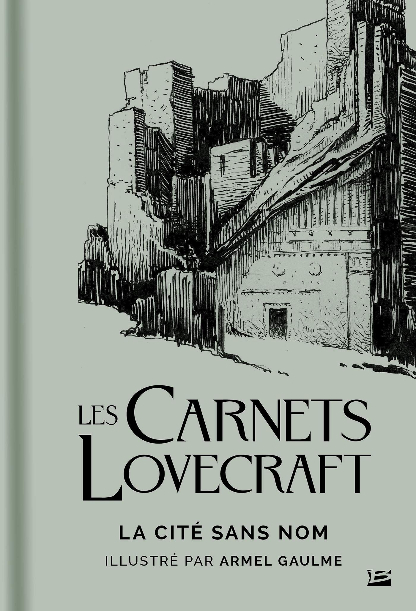 Que nous offre donc cette énième édition en France ? S’agit-il encore d’un pur produit mercantile, surfant éhontément sur la vague cthuluène, sorti juste pour faire de l’œil aux collectionneurs dont le nombre s’accroît exponentiellement ? Eh bien non, définitivement non ! L’idée de carnets de croquis inspirés des histoires de Lovecraft est non seulement excellente, mais exécutée par un artiste si passionné et talentueux que je ne serais pas surpris qu’à l’instar de François Baranger, Armel Gaulme soit publié rapidement dans différents pays. Après s’être attaqué à Dagon, il nous emmène ici en voyage aux confins du désert d’Arabie à la recherche de La cité sans nom.