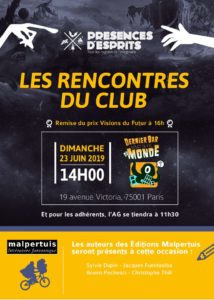 L’été arrive, l’été revient ! Et avec lui, les Rencontres du club. Nous vous invitons à venir partager avec nous un moment festif et joyeux, le Dimanche 23 juin 2019, au Dernier Bar Avant la Fin du Monde.