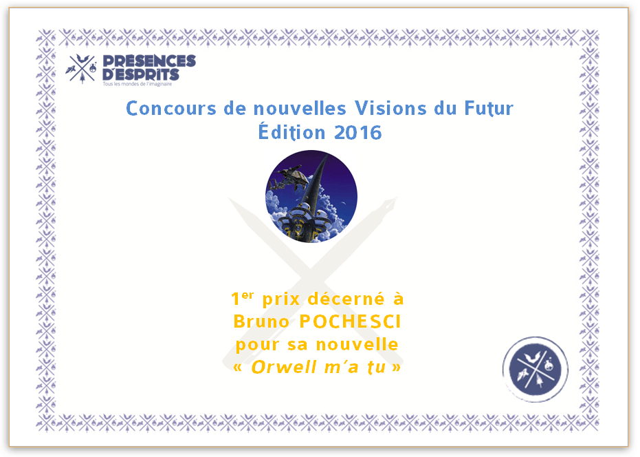 - 1er prix : Bruno Pochesci, Orwell m’a tu, sur le thème « Singularité »