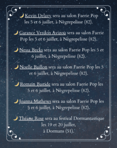 Étant donné que nous n’avons aucun objectif de ventes, les auteurs mal à l’aise ou timides n’ont aucune obligation de faire des salons. Le bonheur et le plaisir de mes auteurs comptent avant tout !
